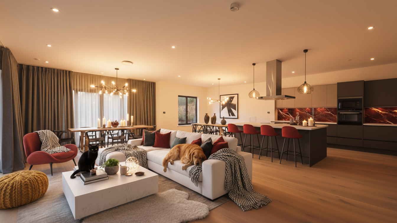 Open‑plan kitchen and living room area is where cooking, [...]