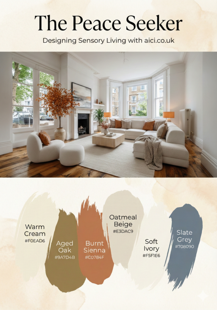 We stripped back the bright, noisy colours. Oatmeal, warm clay, and sage green are soothing tones. They signal to your brain that it is safe to switch off.