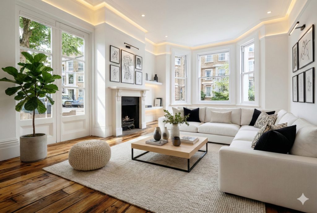 To help you visualise the potential, we styled this Victorian living room in 13 different ways, ranging from simple, well-known styles to our own signature looks. You will see the full collection below.